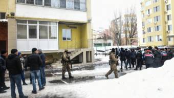 Truyền hình Ukraine chiếu cảnh một số cửa ra vào đã bị đập vỡ khi các lính đặc nhiệm dùng vũ lực để vào bên trong.