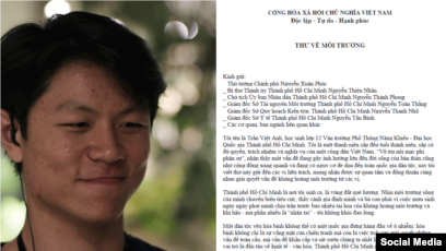 Bức thư gửi đến Thủ tướng Nguyễn Xuân Phúc, cùng các lãnh đạo thành phố Hồ Chí Minh đề ngày 8/10 có đoạn: