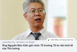 Ngày 12/12, Thủ tướng Nguyễn Xuân Phúc ký quyết định bổ nhiệm ông Nguyễn Đức Kiên giữ chức vụ Tổ trưởng Tổ tư vấn kinh tế của Thủ tướng.