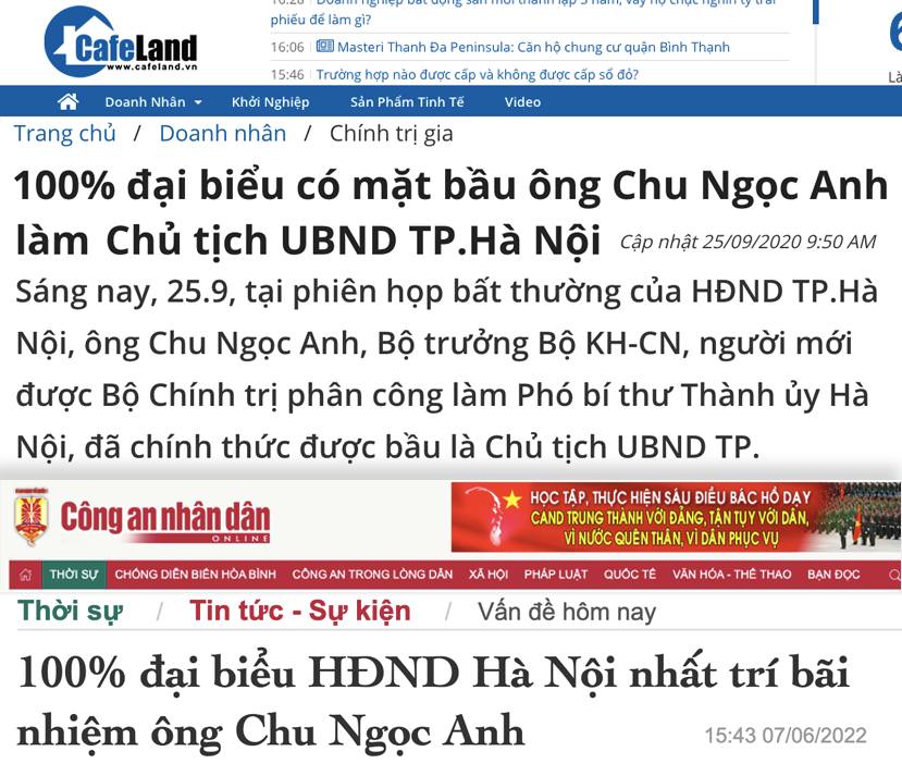 Chu Ngọc Anh bị bãi nhiệm bởi 100% đại biểu Hội đồng nhân dân Thành phố Hà Nội. Một con số khủng như khi ông ta được bầu vào chức vụ ấy!